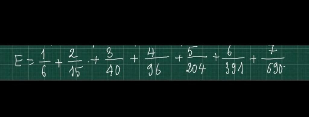 `E=1/6+2/15+3/40+4/96+5/204+6/391+7/690`