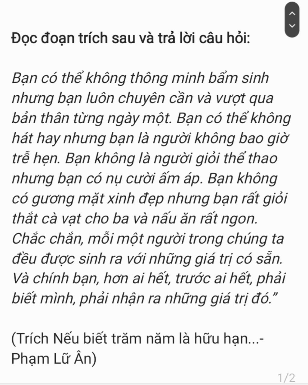 Câu 4: 4 câu đầu người viết nêu ra những gì bạn không có và những gì bạn có tác giả lập luận như vậy để đi đến sự kết luận nào Câu 5:hãy nhận xét điểm giống nhau về ý nghĩa nội dung của đoạn văn trên mà văn bản Xem người ta kìa