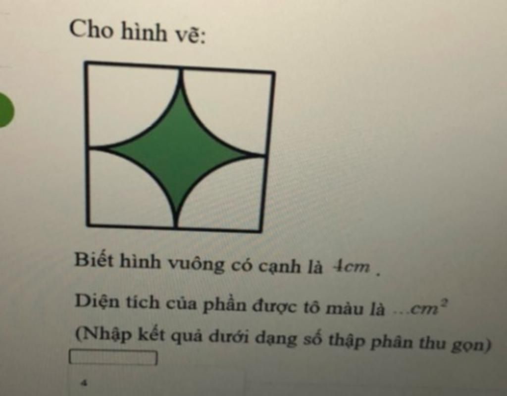 Vì phần ko tô màu của hình vuông là 1 hình tròn. Vậy bán kính hình tròn là: