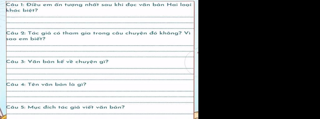 Câu 1: Điều em ấn tượng nhất sau khi đọc văn bản Hai loại