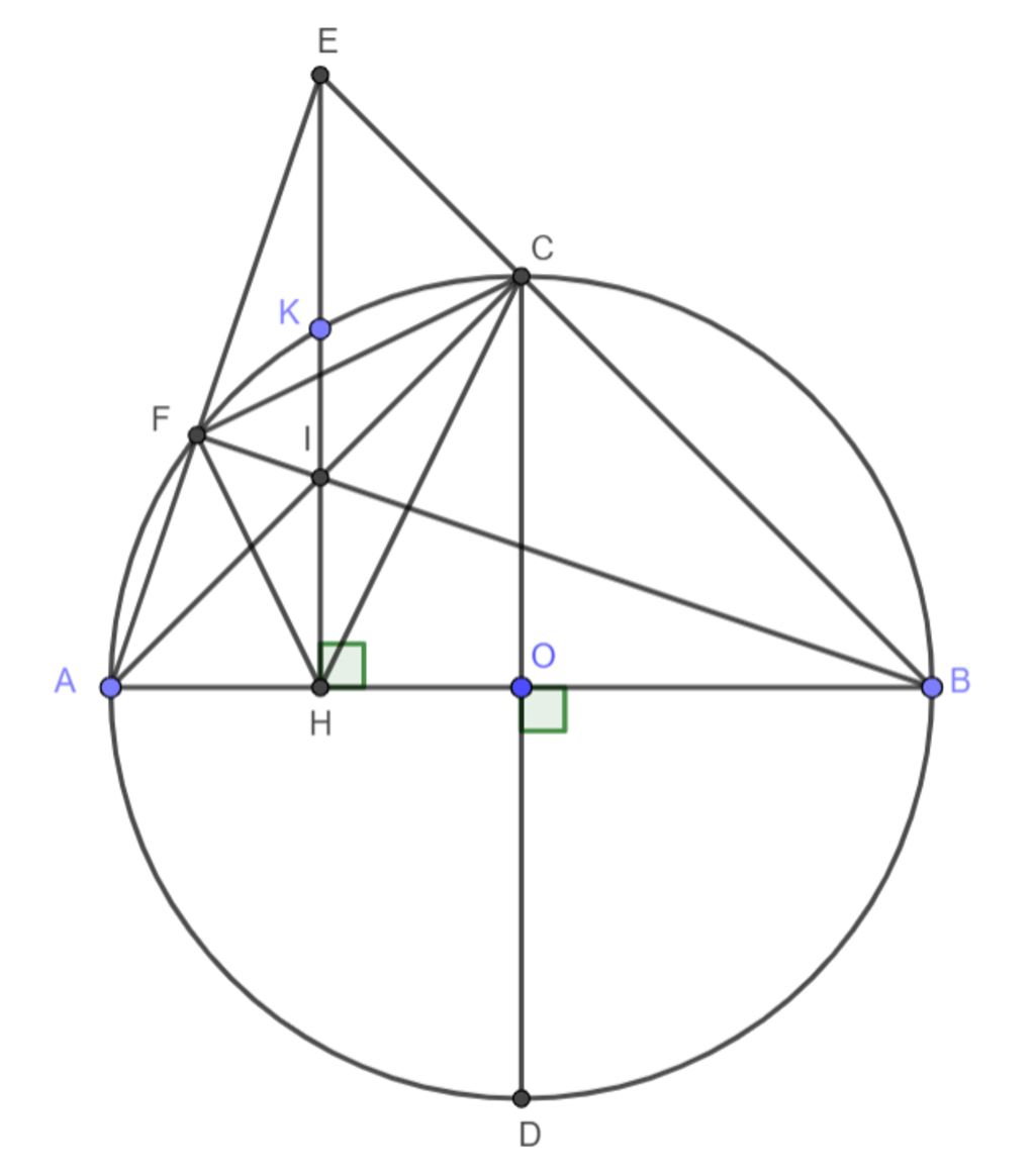 2) Tứ giác $EFIC$ có $\widehat{EFI}+\widehat{ECI}=180^o$ mà chúng ở vị trí đối nhau nên $EFIC$ nội tiếp