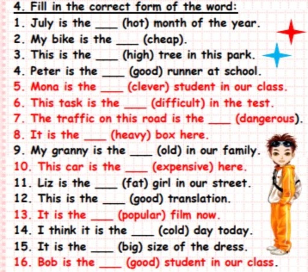 ghi nguyên đáp án thôi ạ, Ví dụ như: 1. Hottest