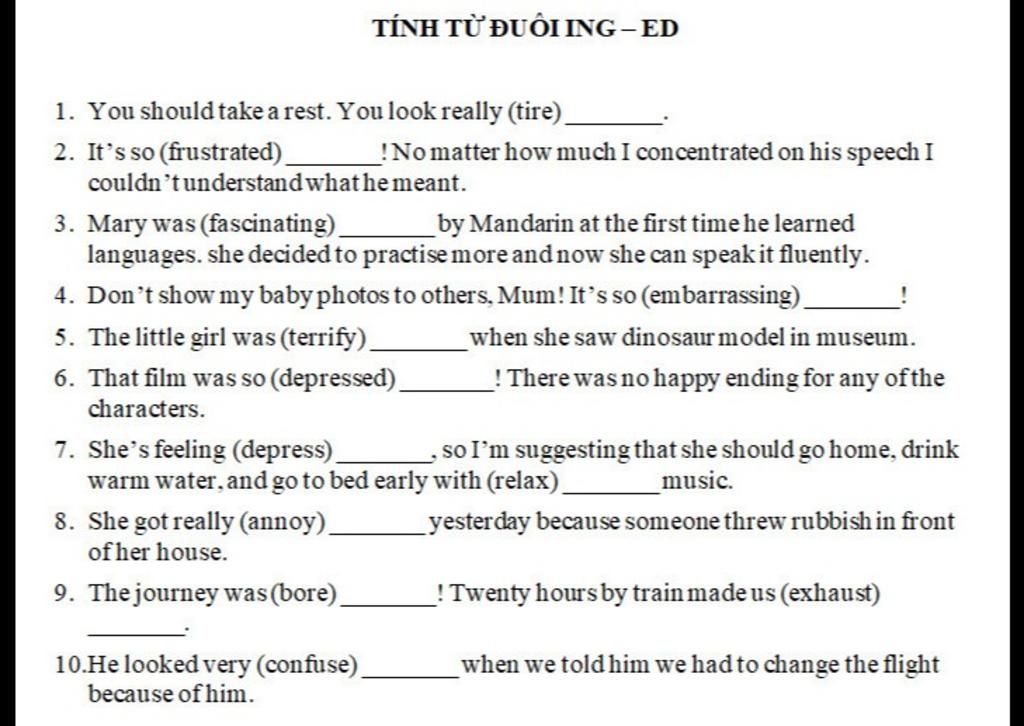 `9)`boring :ing để mô tả sự vật và hoàn cảnh
