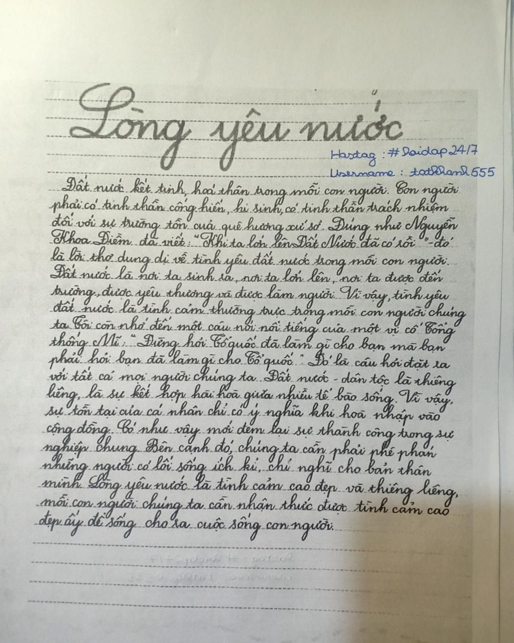 Câu 1: (2.0 điểm):Từ nội dung của văn bản trên, trình bày suy nghĩ của em về lòng yêu nước