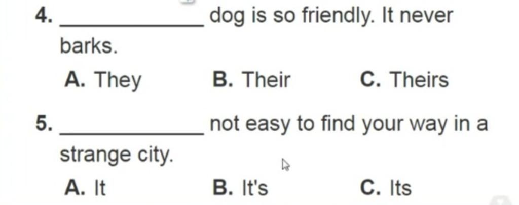 => Tính từ sở hữu là những từ đứng trước danh từ để cho biết danh từ đó của ai, của cái gì. Chúng ta gọi tên nó là tính từ sở hữu vì nó thể hiện tính chất sở hữu của người hoặc vật với danh từ đi sau nó. Dog là danh từ nên ta dùng their.