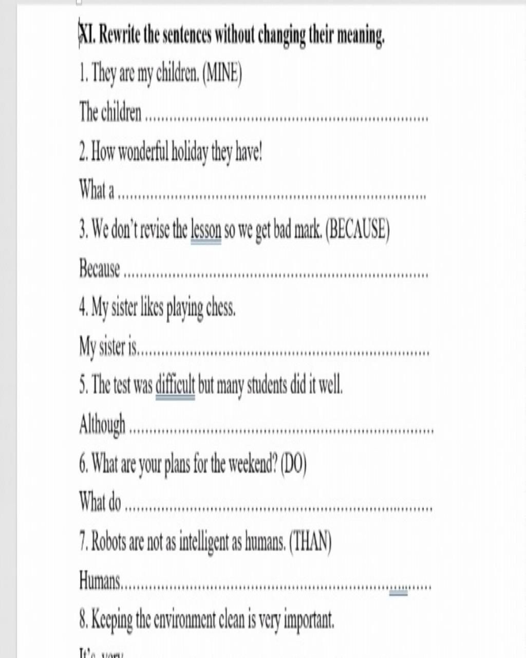 XI. Rewrite the sentences without changing their meaning.