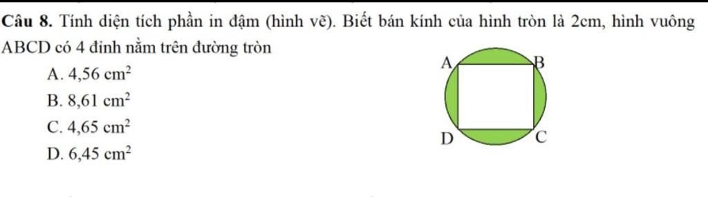 12,56 - 8 = 4,56 ( cm2 )