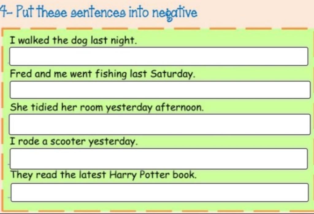 Put these sentences into negative : Chuyển những câu này thành câu phủ định