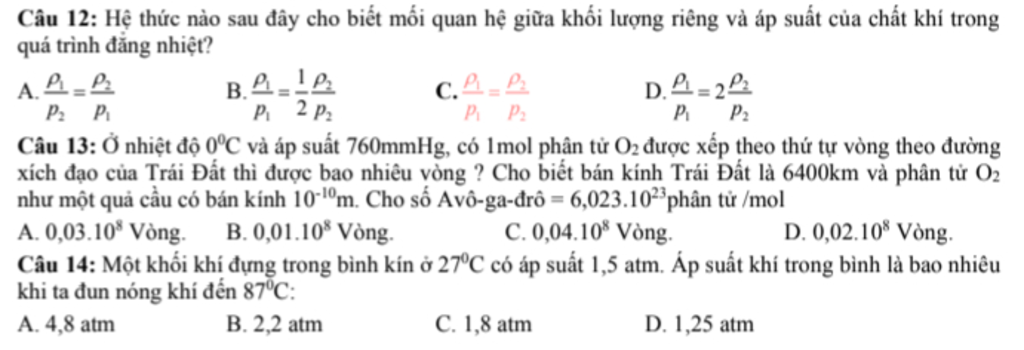 \[{p_1}{V_1} = {p_2}{V_2} \Leftrightarrow \frac{{{p_2}}}{{{p_1}}} = \frac{{{V_1}}}{{{V_2}}} = \frac{{\frac{m}{{{\rho _1}}}}}{{\frac{m}{{{\rho _2}}}}} = \frac{{{\rho _2}}}{{{\rho _1}}}\]