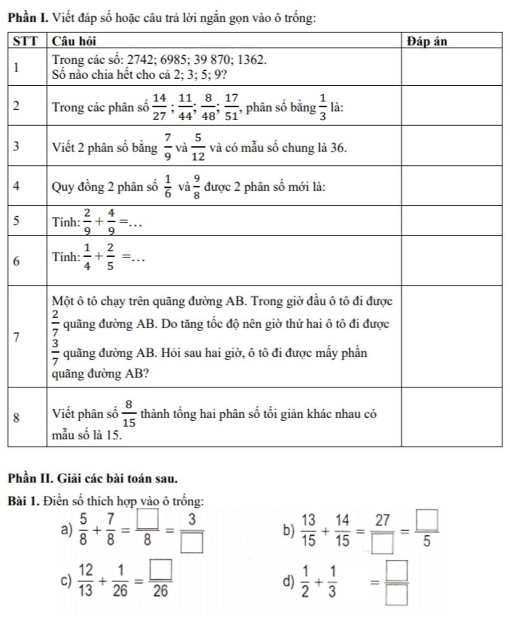 `2/7 + 3/7 = 5/7` ( quãng đường )