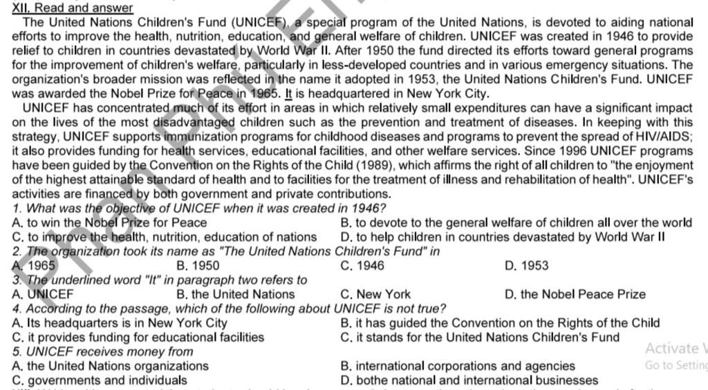 efforts to improve the health, nutrition, education, and general welfare of children. UNICEF was created in 1946 to provide