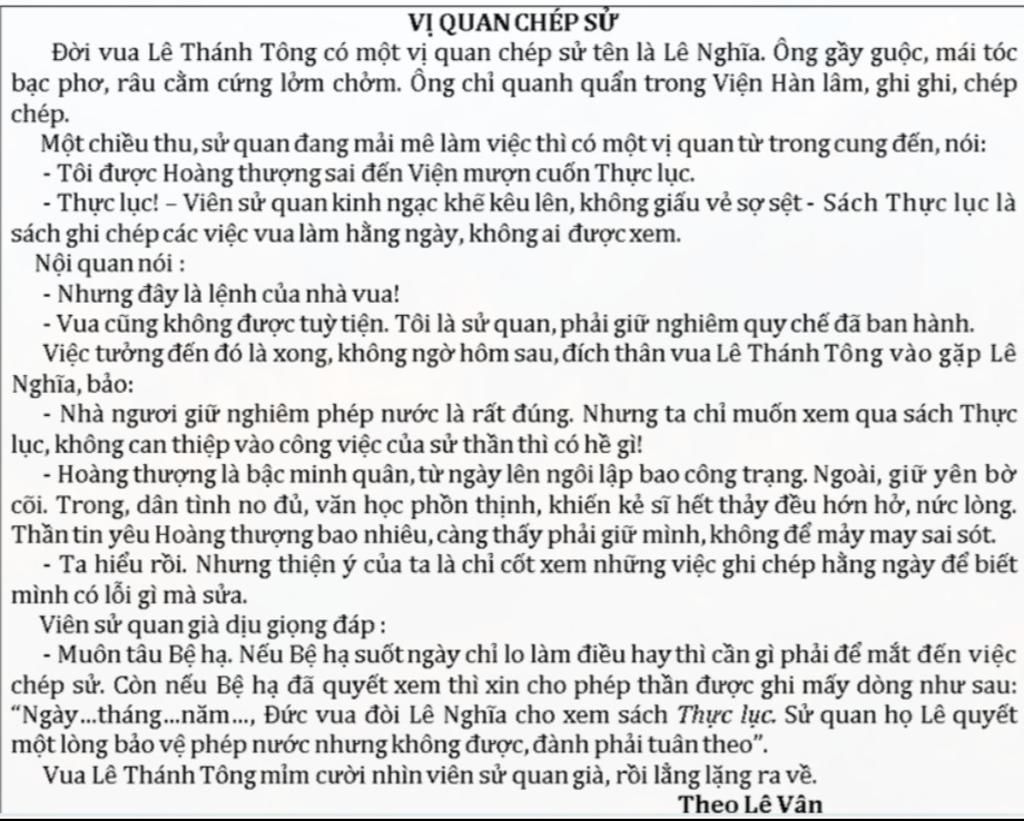 Câu 1: Mượn cuốn sách ghi chép các việc vua làm hằng ngày.