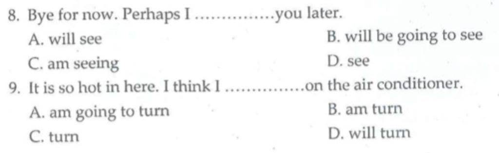 9)A. am going to turn