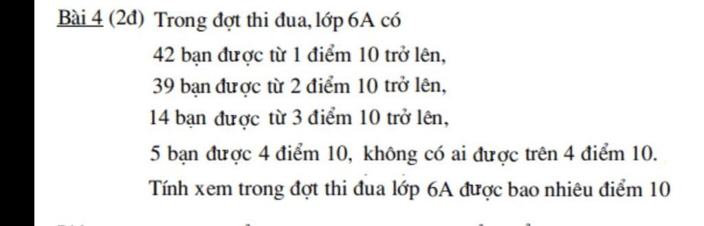 Trong đợt thi đua lớp 6A được số điểm 10 là :