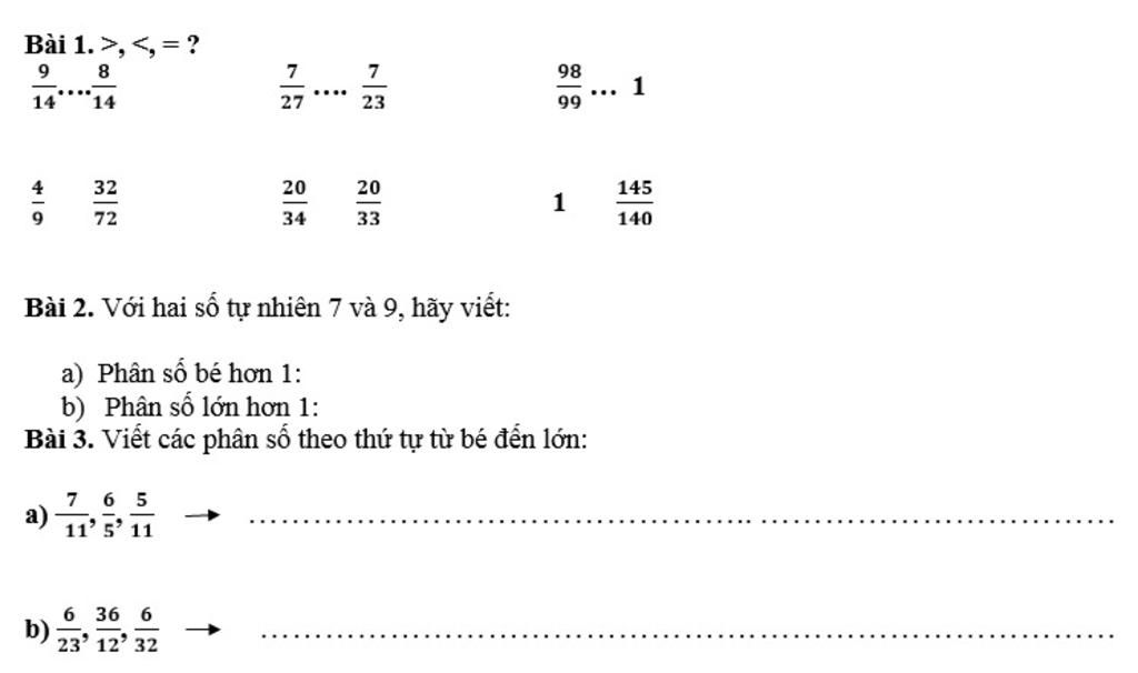 Viết theo thứ tự từ bé đến lớn là : `6/32; 6/23; 6/2`