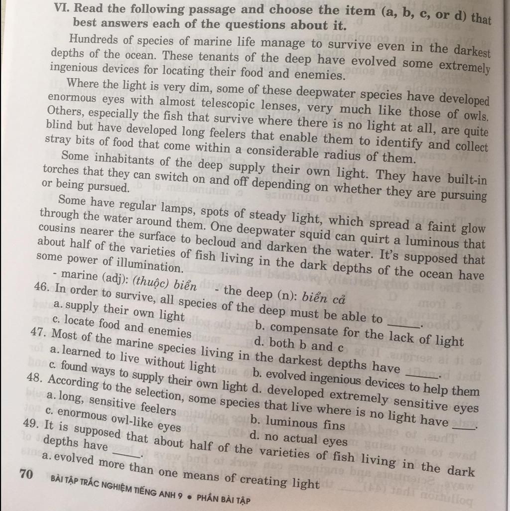 VI. Read the following passage and choose the item (a, b, c, or d) thet