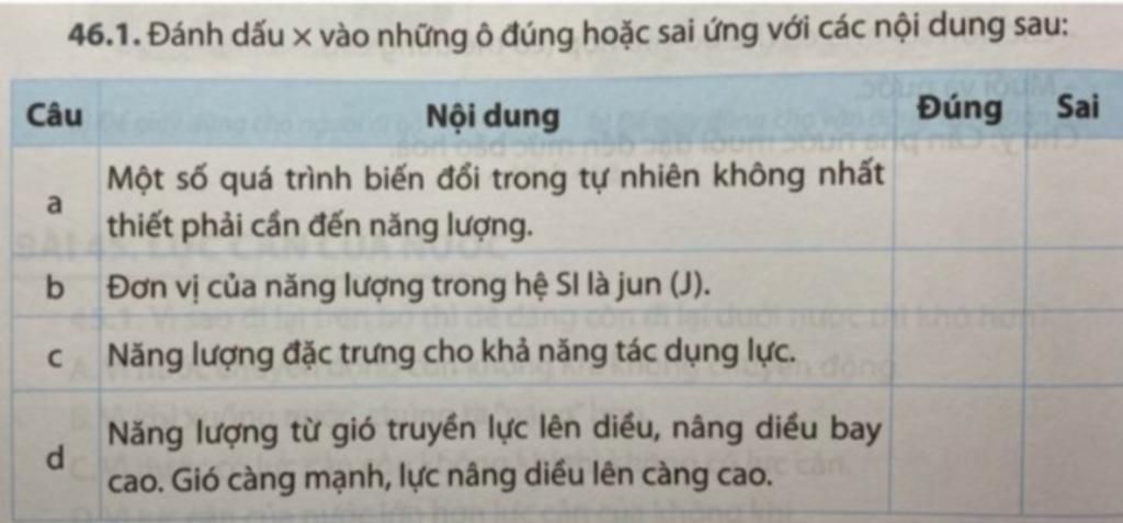 C)Năng lượng đặc trưng cho khả năng tác dụng lực là đúng.