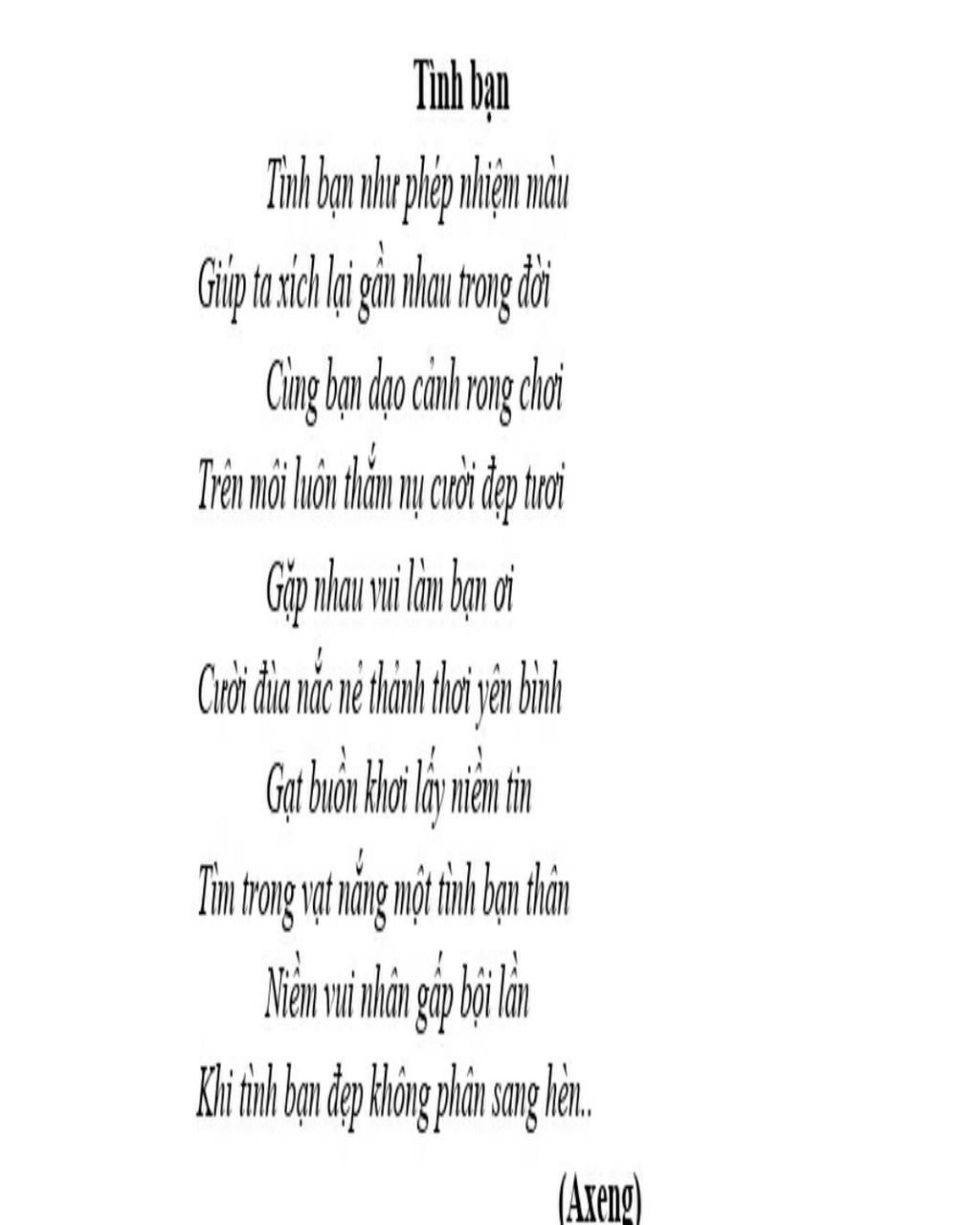 Đề bài: Từ nội dung bài thơ "Tình bạn" em hãy viết đoạn văn ngắn từ 5-7 câu nêu suy nghĩ của em về vai trò của tình bạn.