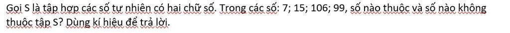 Vậy: 7 ∉ S; 15 ∈ S; 106 ∉ S; 99 ∈ S