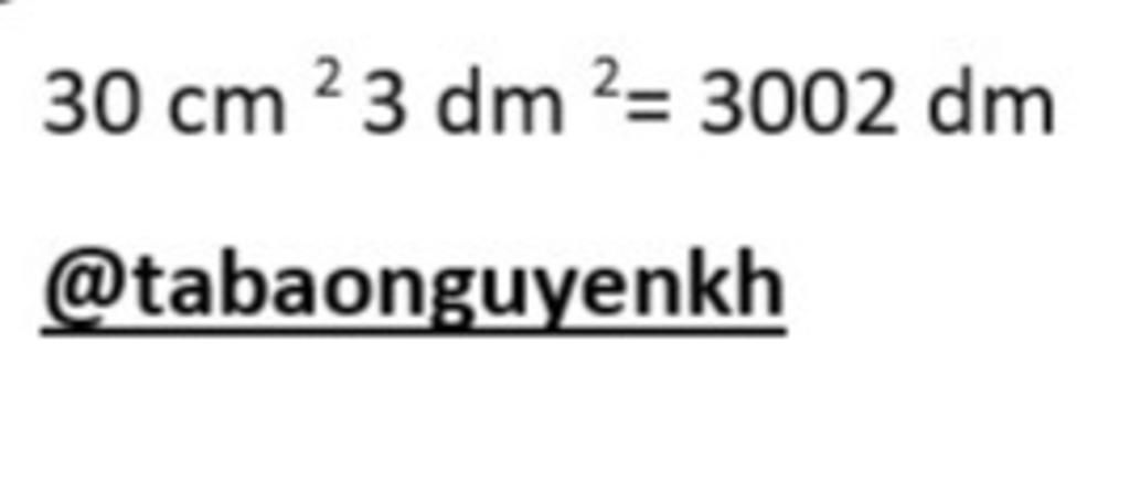 `30 m^2 3 dm^2 = 30000 cm^2 + 300 cm^2 = 30300 cm^2`