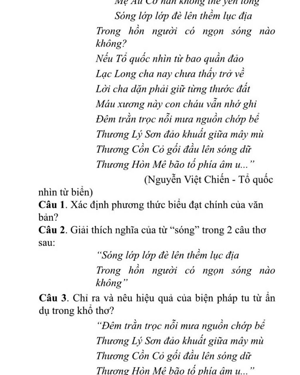 -> Là ngọn sóng lòng nhắc nhở về chủ quyền biển đảo quốc gia và ý thức bảo vệ chủ quyền ấy được toàn vẹn khi nhìn từ biển, nhìn từ thềm lục địa.