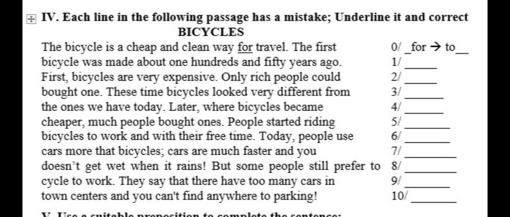 + IV. Each line in the following passage has a mistake; Underline it and correct