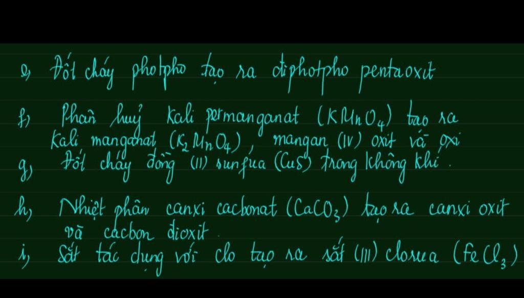 $g)_{}$ $2CuS_{}+3O_2$ $\xrightarrow[]{t^o}2CuO+2SO_2$