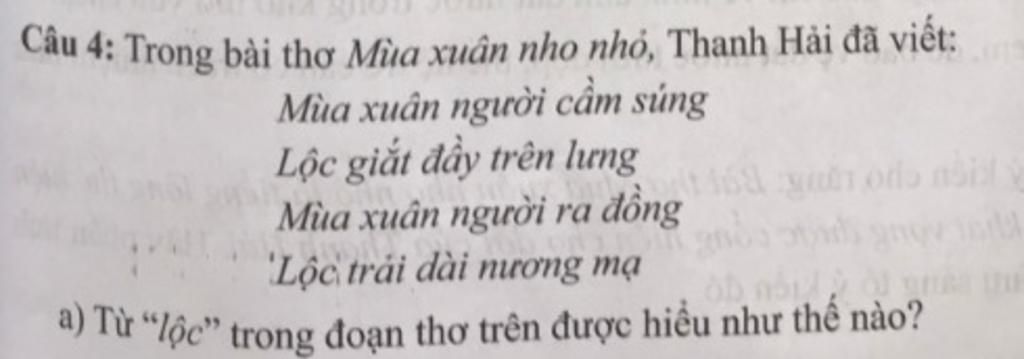 - Từ "lộc" trong đoạn thơ được hiểu theo nghĩa tả thực và nghĩa ẩn dụ tượng trưng.