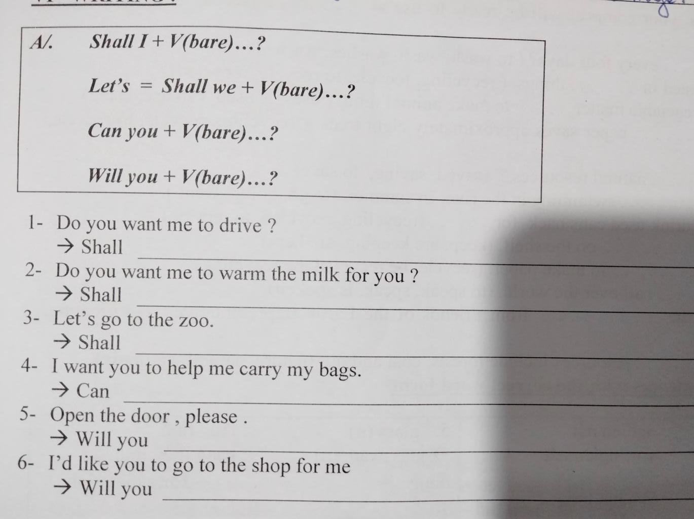 => Cấu trúc : Shall I + V?