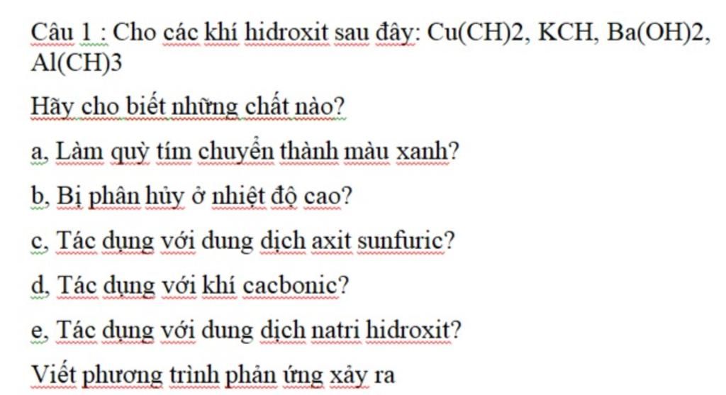 a) $Ba(OH)_2, KOH$ làm quỳ hóa xanh (kiềm làm đổi màu chất chỉ thị)
