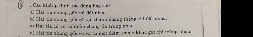 c) Hai tia có vô số điểm chung thì trùng nhau.
