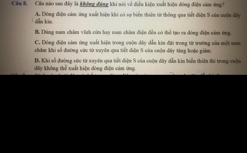 Câu nào sau đây là không đúng khi nói về điều kiện xuất hiện dòng điện cảm ứng?