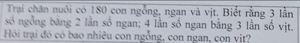 4 lần số ngan mới bằng 3 lần số vịt nên số ngan phải ít hơn số vịt, => số ngan = 3/4 số vịt