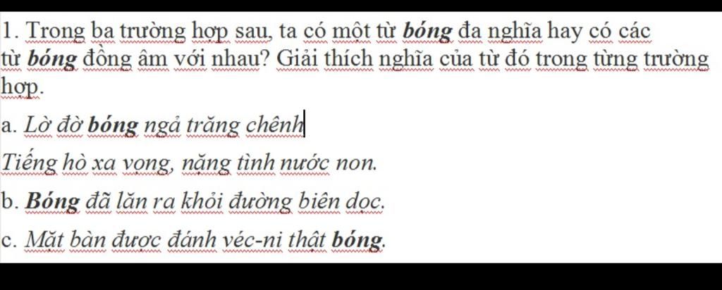 `->` Trong ba trường hợp trên, các từ ''bóng'' đồng âm với nhau.