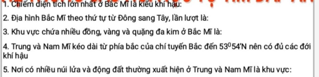 5.Nơi có nhiều núi lửa và động đất thường xuất hiện ở Trung và Nam Mĩ là khu vực eo đất Trung Mĩ.