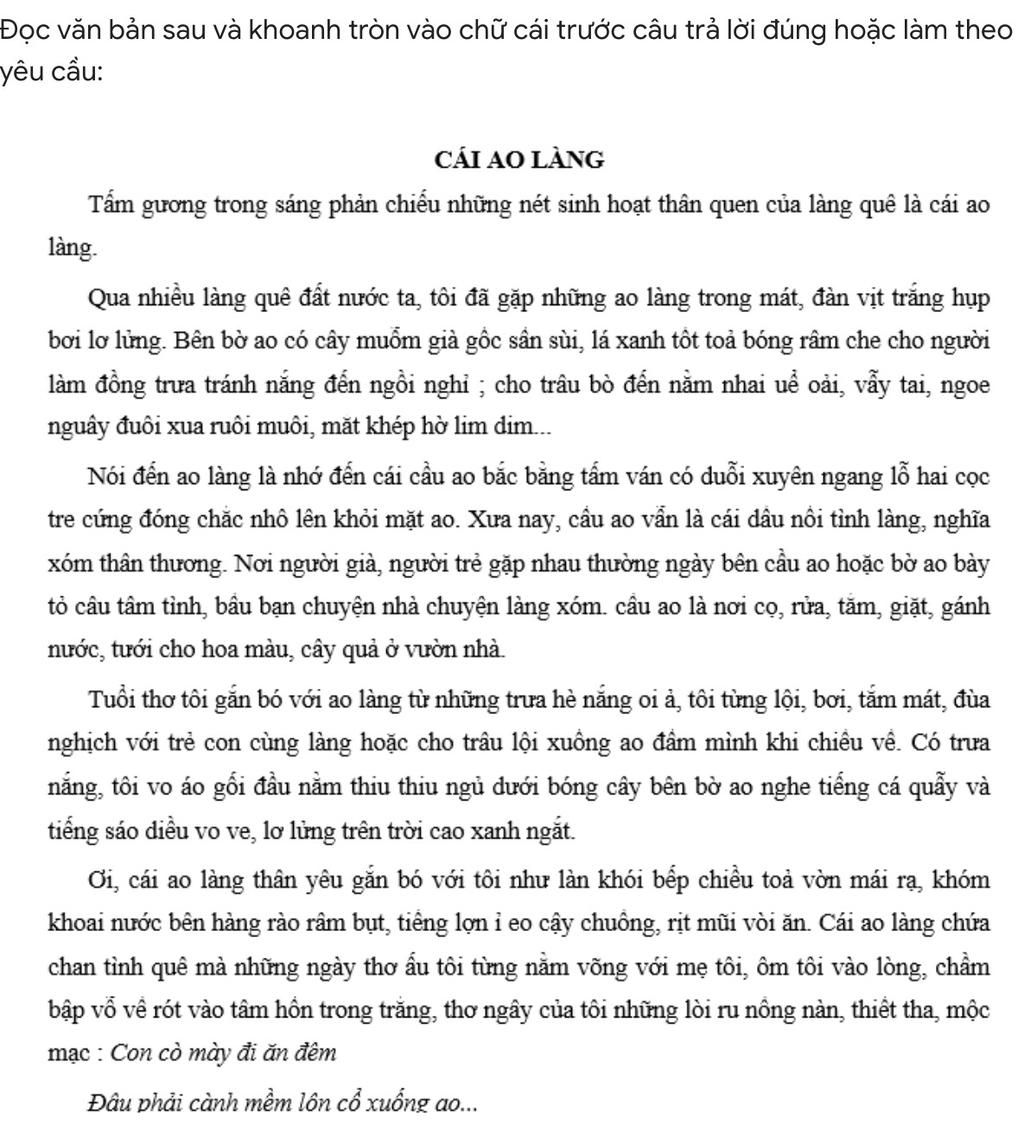 Câu 2: Vì sao tác giả lại cho rằng "Nói đến ao làng là nhớ đến cái cầu ao.” *