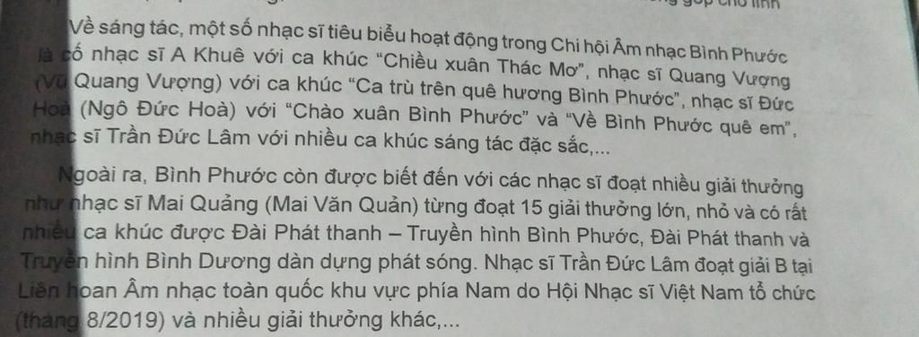 Kể tên 1 số nhạc sĩ có thành tựu về âm nhạc BÌNH PHƯỚC??