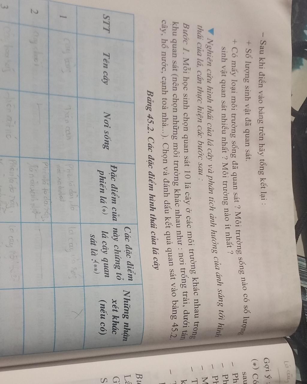 STT Tên cây Nơi sống Đặc điểm của phiến lá Các đặc điểm này chứng tỏ lá cây quan sát là Những nhận xét khác
