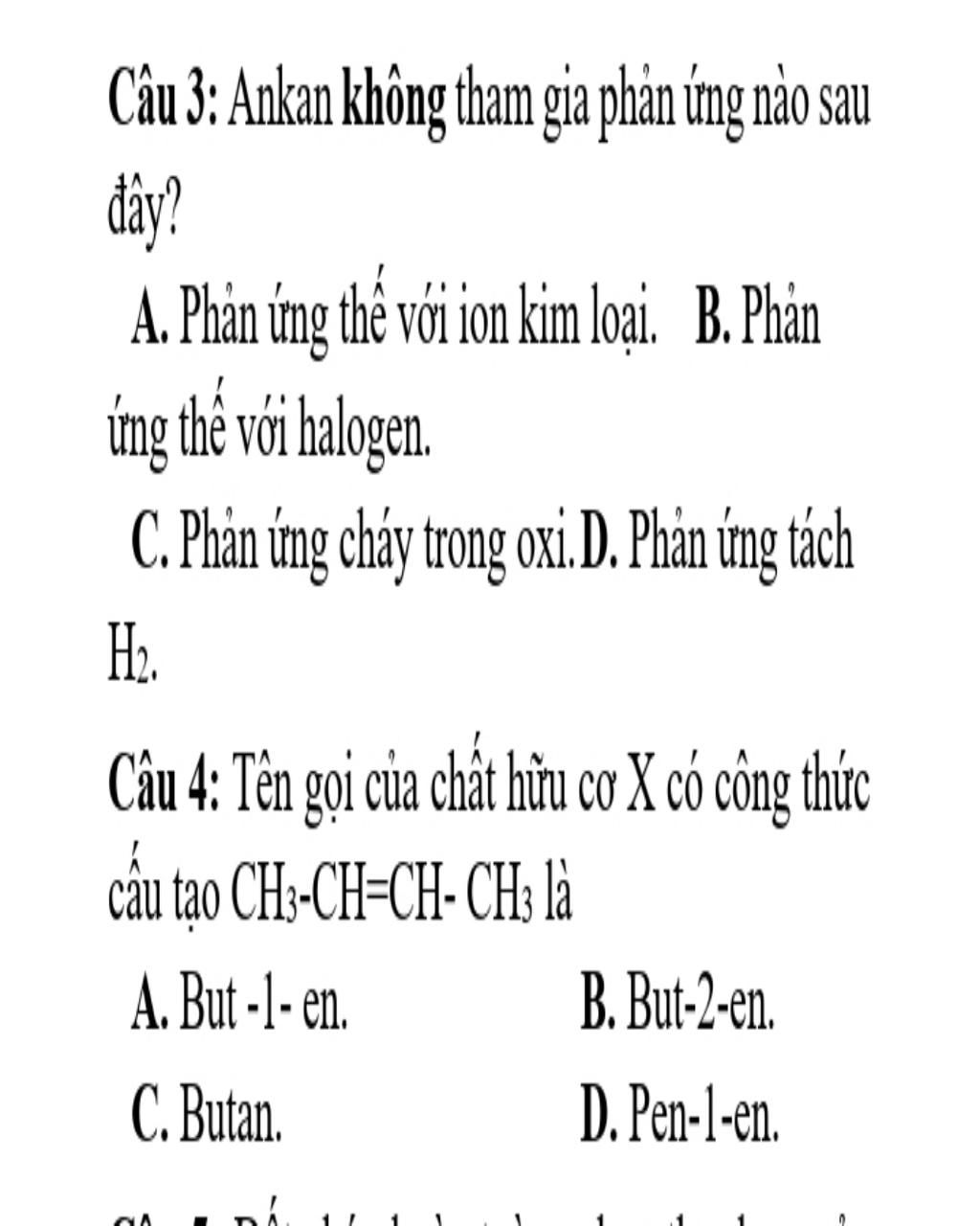 Gọi tên: $CH_3-CH=CH-CH_3$ là $But-2-en$
