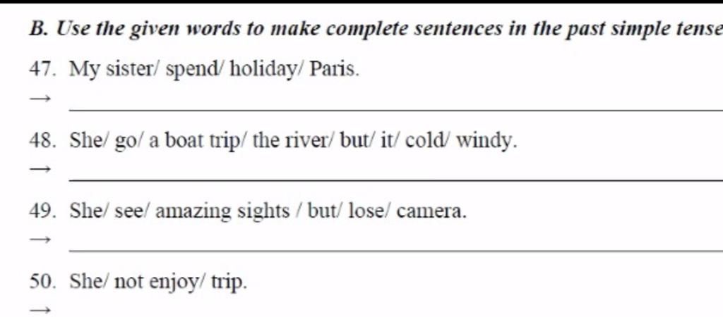 *Đề bài yêu cầu chia theo thì quá khứ đơn