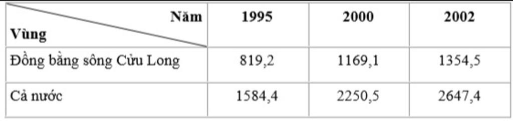 + Sản lượng thủy sản đồng bằng sông Cửu Long tăng từ 819,2 nghìn tấn (1995) lên 1354,5 nghìn tấn (2002), tăng gấp 1,65 lần.