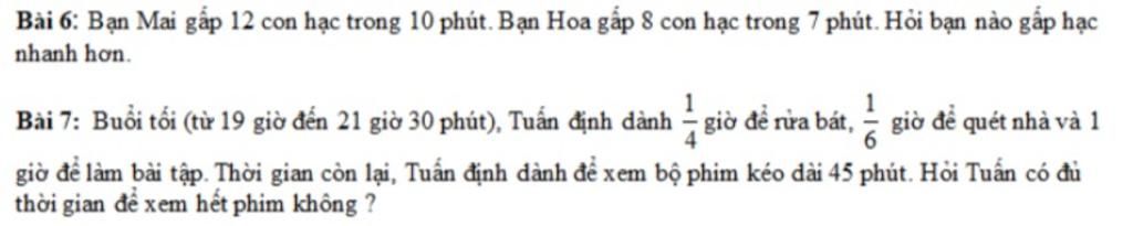 $\text{8 : 7 = }$$\dfrac{8}{7}(phút)$