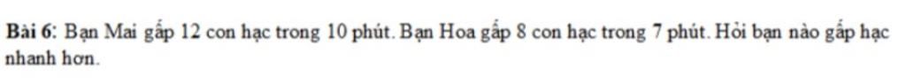 Vậy bạn Hoa gấp hạc nhanh hơn bạn Mai.