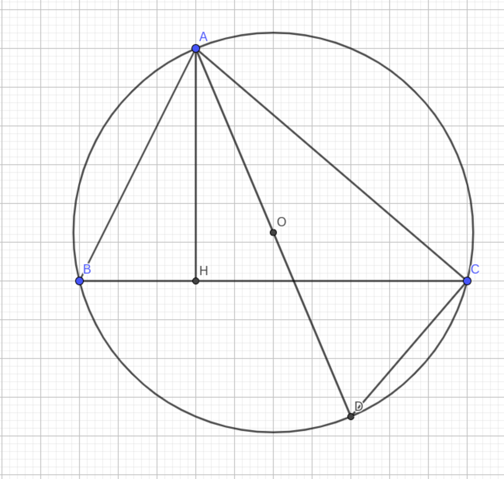 $AH\perp BC, AD$ là đường kính $\to\widehat{AHB}=\widehat{ACD}(=90^o)$