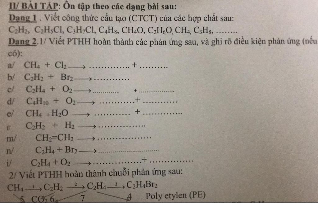 \(nC{H_2} = C{H_2}\xrightarrow{{{t^o},xt}}{( - C{H_2} - C{H_2} - )_n}\)