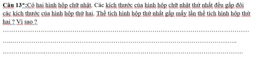 Thể tích hình hộp chữ nhật thứ nhất gấp số lần thể tích hình hộp chữ nhật thứ hai là: