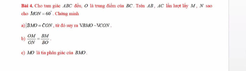 `=> \hat{BMO}=\hat{OMN} => MO` là tia phân giác của `\hat{BMN}`
