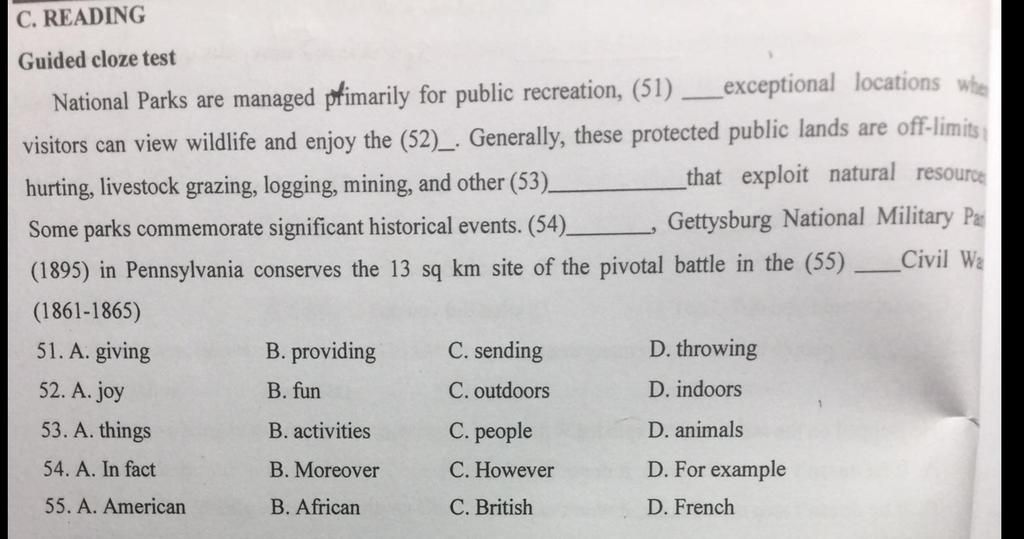 $\text{53. B. activities}$