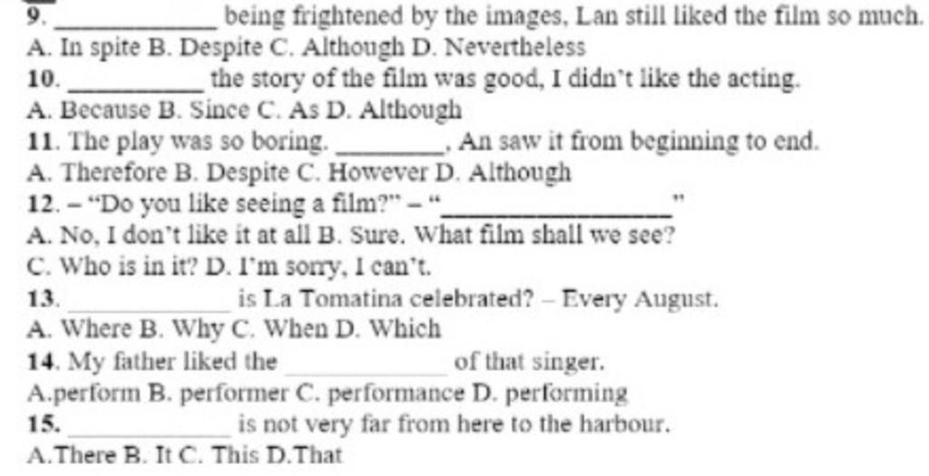 - Dịch: Mặc dù sợ bởi những hình ảnh, Lan vẫn rất thích bộ phim.
