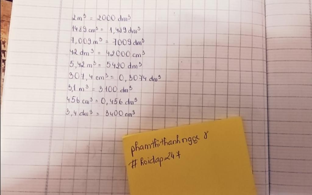 `*** 1 m^3 = 1 000 dm^3 ` `-> 1 dm^3 = 1/1000 m^3`